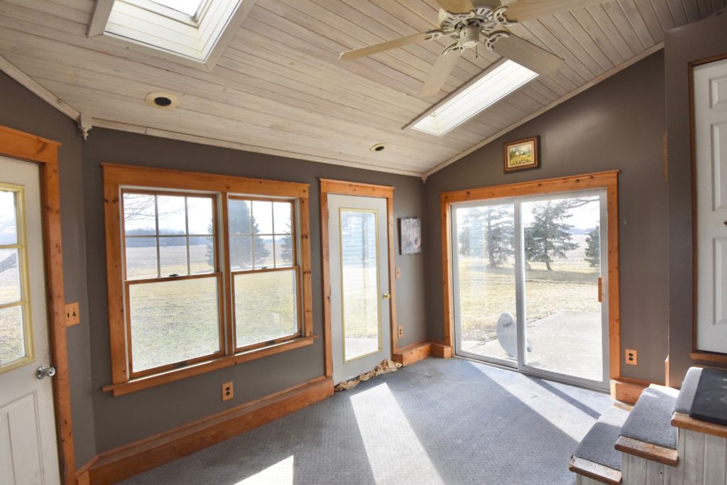 About the house: Large, comfortable, farm house on serene 1 Acre lot surrounded by farms. 1970 Sq Ft... 4 bedrooms... 2 full baths... Open concept kitchen with island... Newer (2yr old) roof on house... Updated electrical... Updated pluming... Partially Finished Basement... Huge 3 car garage with extra high ceilings